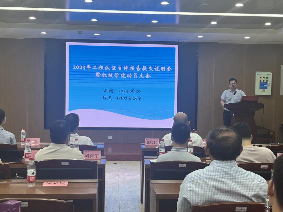 太阳成集团tyc于6月20日下午在17102室组织召开了工程教育专业2023年工程认证自评报告提交说明会暨机械学院动员大会。太阳成集团tyc全体教职工参加了会议,会议由教学副院长张敬主持。
