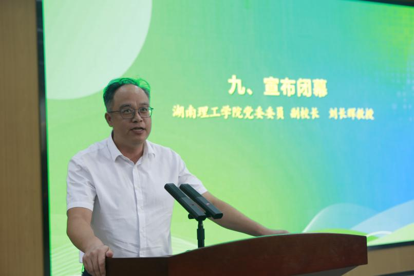 闭幕式由学校教务处处长彭鑫教授主持,华中科技大学陈刚教授对参赛作品进行了详细点评,并向各团队分享了自己多年来参与节能减排竞赛的宝贵经验。音乐学院带来《美丽的心情》女声独唱、《赛马》二胡齐奏的精彩表演。随后,进行了庄严的会旗交接仪式,第三届承办单位国防科技大学代表赵玉新教授进行了表态发言。最后,副校长刘长辉教授宣布第二届湖南省大学生节能减排社会实践与科技竞赛顺利闭幕。