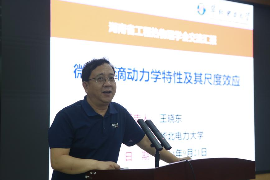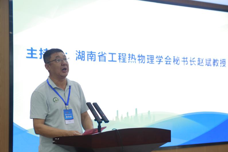 开幕式后,活动进入精彩的学术报告环节。湖南省工程热物理学会秘书长赵斌教授担任主持,邀请了华北电力大学王晓东教授与广州能源研究所黄振研究员分别做了《微纳液滴动力学特性及其尺度效应》、《有机固废化学链气化》等精彩的特邀报告。他们的报告深入浅出,为与会人员带来了前沿的学术资讯和独到的见解。