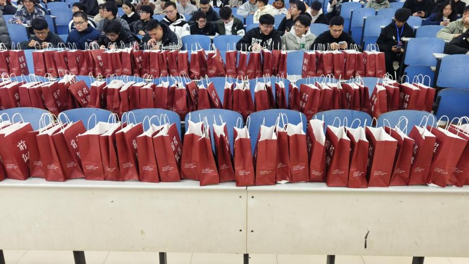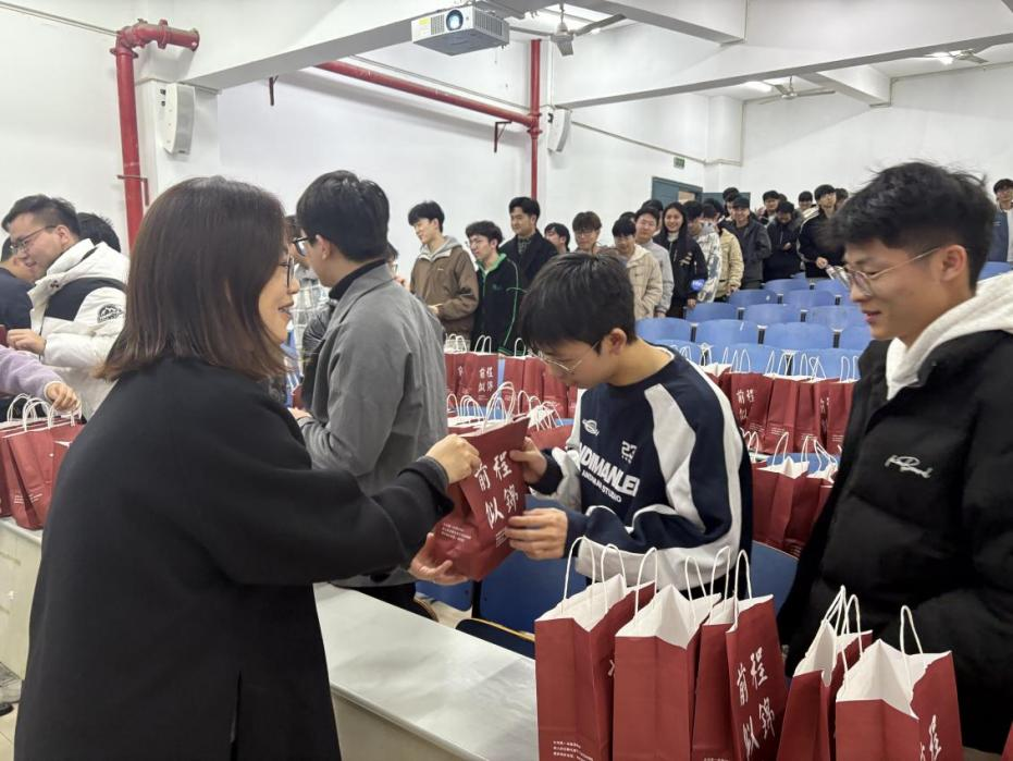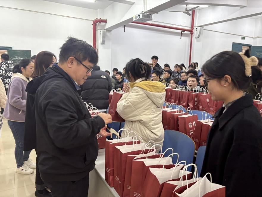 慰问现场气氛活跃,学院领导老师们为200余名考研学子送上心想事“橙”大礼包,内含前程似锦礼品袋、暖宝宝、士力架、橙子等寓意丰富的礼物,每一份慰问品都饱含着学院对考研学子的殷切关怀和深深祝福。