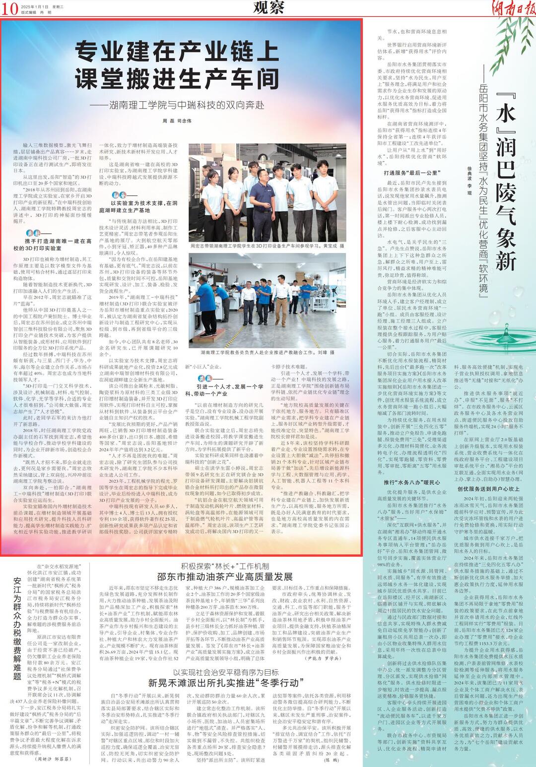 “2018年从苏州回到岳阳,在湖南理工学院成立实验室,在家乡开启3D打印产业的新征程。”在中瑞科技创始人、湖南理工学院特聘教授周宏志的讲述中,3D打印的神秘面纱缓缓揭开。