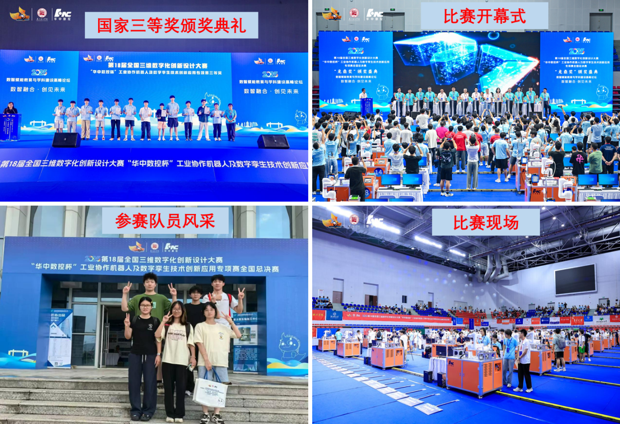 2025年8月17-19日,在厦门理工学院举行的2025“第18届全国3D大赛‘华中数控杯’工业协作机器人及数字孪生技术创新应用专项赛全国总决赛”,机械学院学子第一次参加就凭借出色的创新思维能力和精湛的技术操作水平,从全国240多所高校队伍中脱颖而出,荣获全国一等奖1项、全国三等奖1项的优异成绩!
