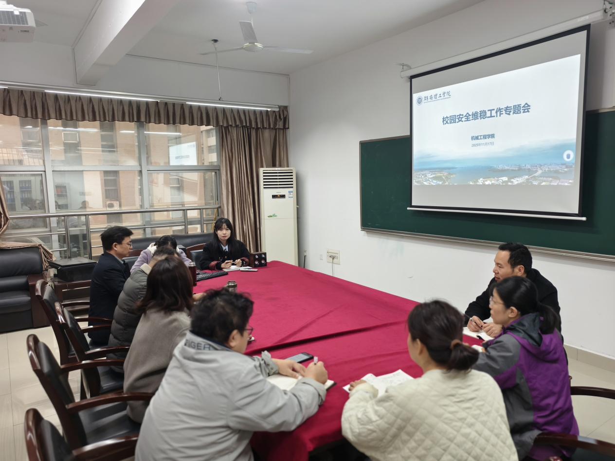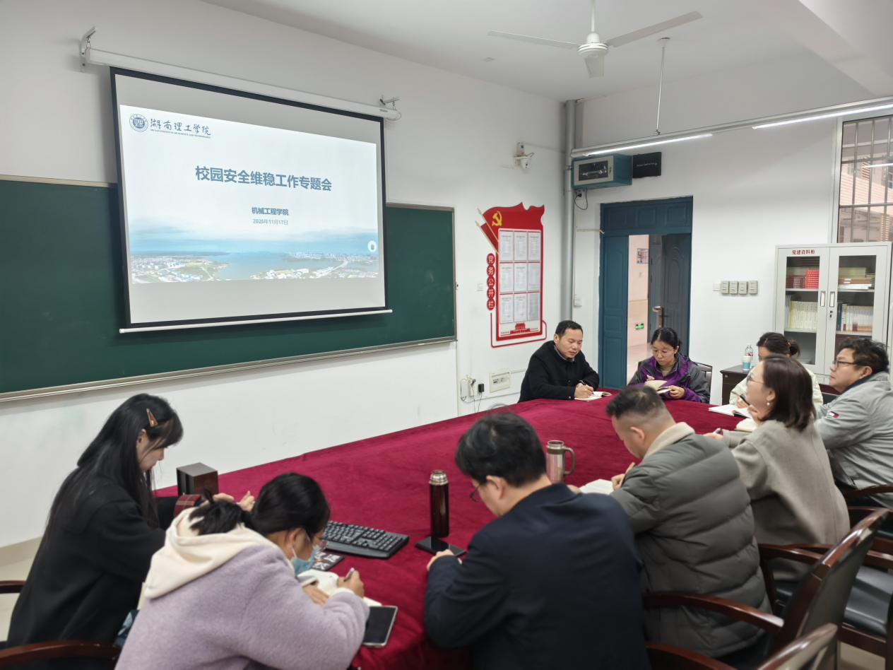 11月17日8:20,我院在16301B会议室召开校园安全维稳工作专题会,重点围绕校园交通综合治理工作展开研讨部署。会议由学院党委书记徐丹主持,学院领导班子成员、辅导员及秘书老师参会。