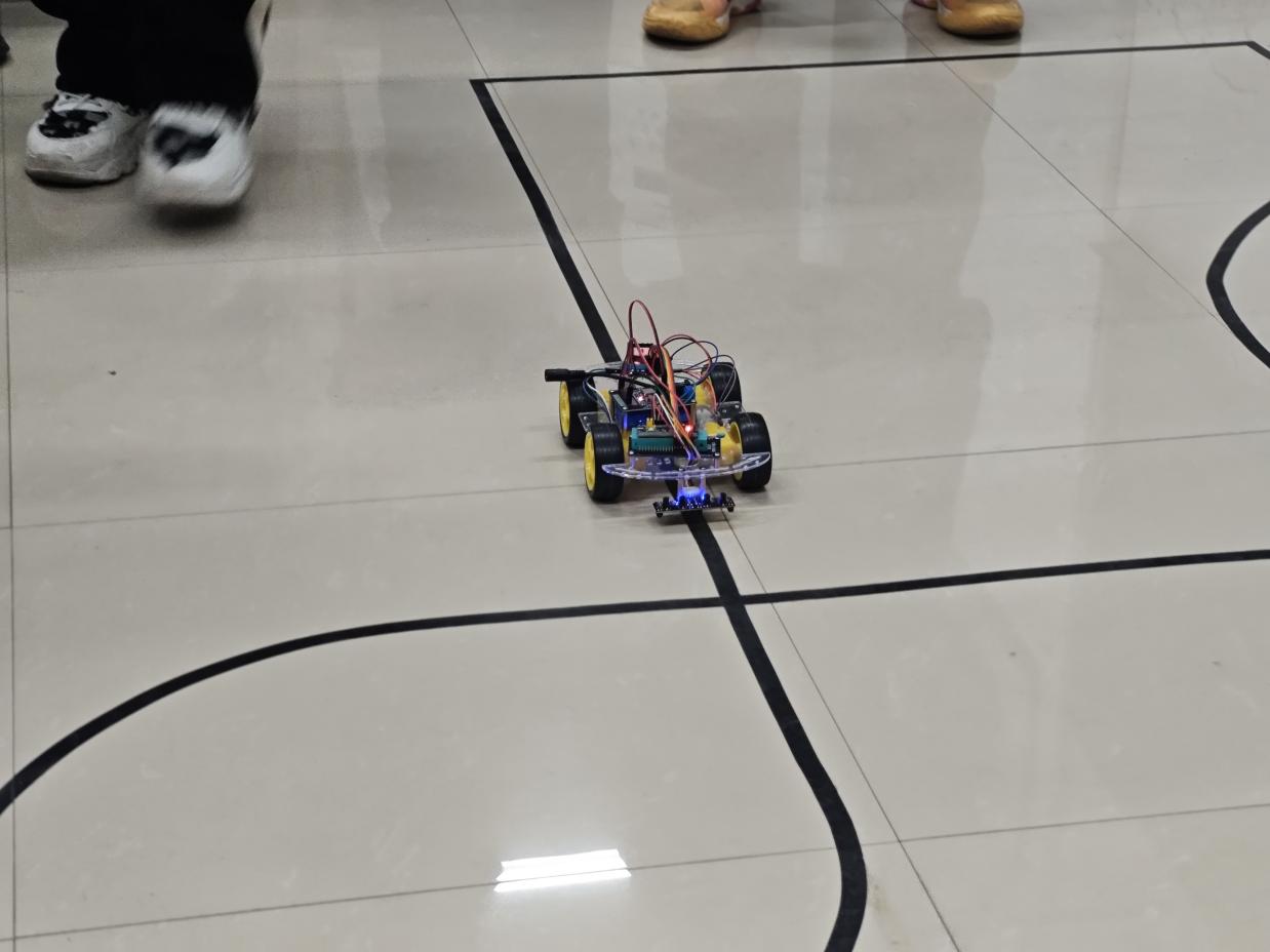 比赛注重检验小车的稳定性与运行效率:在实验室搭建含直角弯道、十字交叉路口和大小半径弯道等场景,选手现场调试设备,小车完成自主循迹任务。