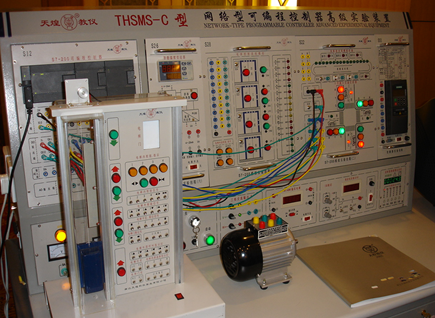 2)PLC实验分室:服务的课程主要是机电传动与控制、可编程序控制器。主要仪器设备有网络型可编程控制器高级实验装置(采用西门子系列的PLC)和相应的实验对象。在此实验平台上可以完成电梯模型、挖掘机模型、机械手模型、材料分拣模型、立体仓库模型、小车运动模型实物教学实验。