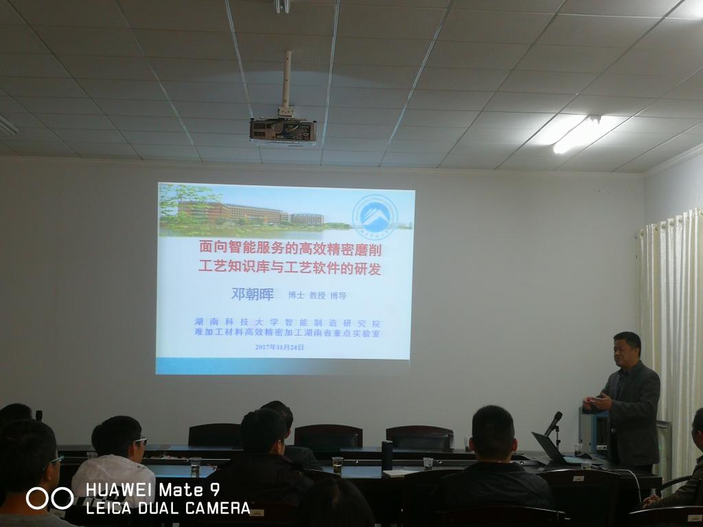 下午2-5点,三位教授在南院16号教学楼16122做了三个方向的学术交流报告,机械学院负责人,十余位教师以及众多同学们积极参与。报告内容主要包括唐进元教授高端装备设计制造关键科学技术问题浅谈,邓朝晖教授面向智能服务的高效精密磨削工艺知识库和工艺软件的研发,毛聪教授CBN-WC-10Co复合材料制备及有序排布纤维刀具切削性能研究。三位教授围绕自己的主题进行了报告并展开交流,引起了师生们的广泛关注与讨论。