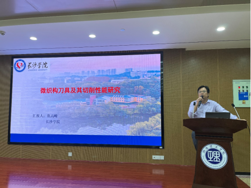 6月12日下午,我院在实验实训大楼17102报告厅举办“去材料精密低损加工研讨会”学术报告活动。湖南大学李伟教授作了题为“等离子体辅助多孔质金刚石超精密研磨机理研究”的学术报告、长沙学院张高峰教授作了题为“微织构刀具及其切削性能研究”的学术报告,科学研究院院长张晓红教授亲临现场,向李伟教授和张高峰教授致以诚挚的欢迎,学院全体无课教师及部分研究生参加了本次报告会。报告会由学院周勇教授主持。