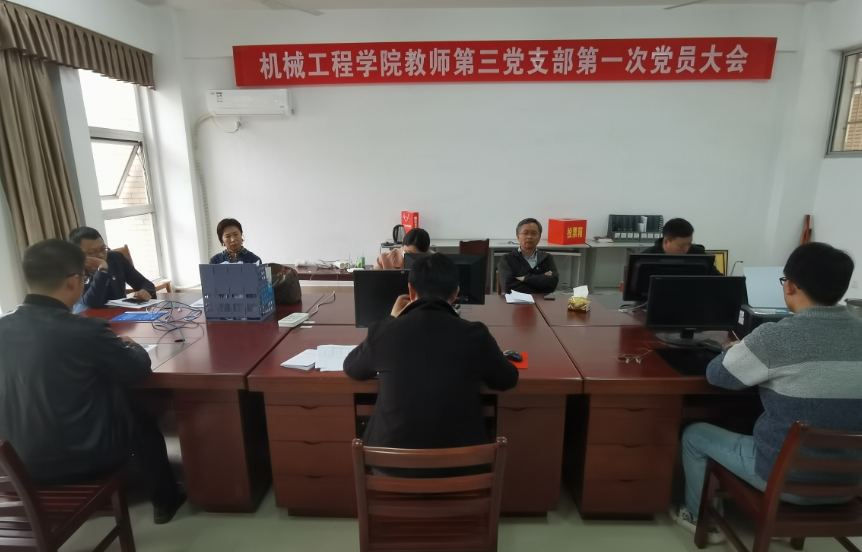 10月26日下午,太阳成集团tyc教师第三党支部成立大会在机械学院会议室召开。参加本次大会的有学院党委副书记徐湛及8名太阳成集团tyc材控教研室党员。本次会议由机械学院教师第三党支部召集人孔祥忠主持。