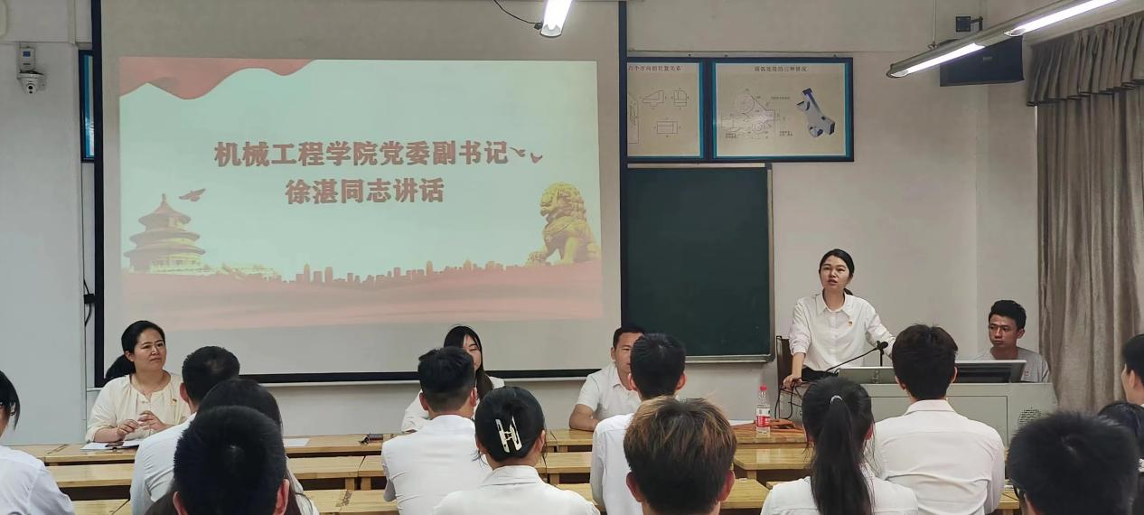 最后,徐湛给党员们上了一堂党课指出:希望各位党员将自身发展融入党和国家的发展,用党的章程规范自身言行,激励自己终身践行入党誓词;扎实学好党的理论知识,坚定跟党走的信念,在党言党,在党护党;希望各位党员积极投身于实践当中去,在实践中创新、在实践中检验真知、在实践中锤炼品格,脚踏实地,积跬步至千里,实现自己的奋斗目标。