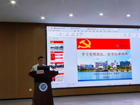 为扎实推进党纪学习教育走深走实,引导广大党员进一步增强纪律和规矩意识,6月4日15:00,我院在17118报告厅开展党委理论学习中心组2024年度第七次集中(扩大)学习暨党纪学习教育第三次专题学习。校党委委员、纪委书记谢贵辉为全体师生党员及入党积极分子授课,学院党委书记徐丹主持。