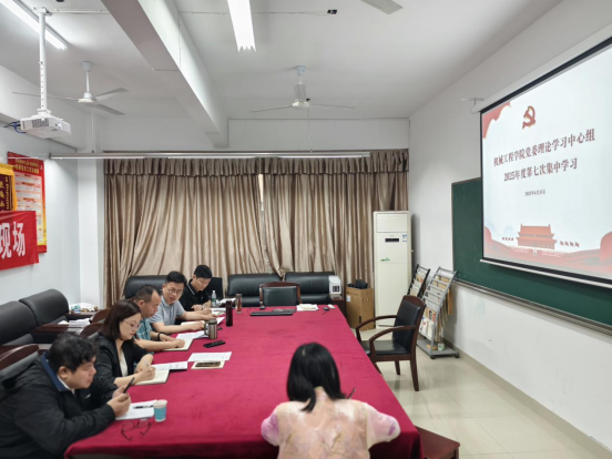 4月15日上午8:30,机械学院党委理论学习中心组在16301B会议室举行2025年度第七次集中学习,学院党委班子成员参加,会议由党委书记徐丹主持。