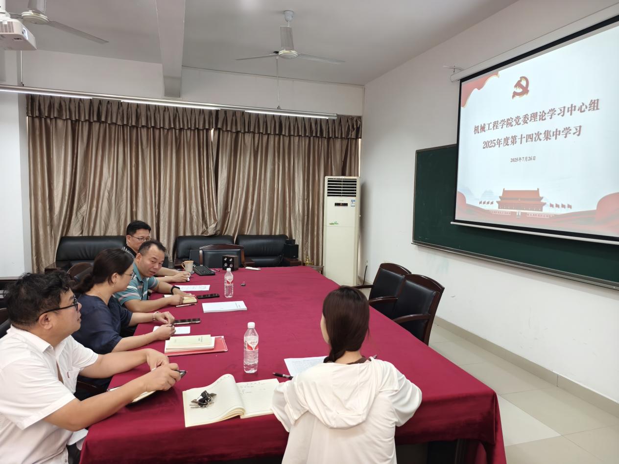 7月26日上午9:00,机械学院党委理论学习中心组在16301B会议室举行2025年度第十四次集中学习,学院党委班子成员参加,会议由党委书记徐丹主持。