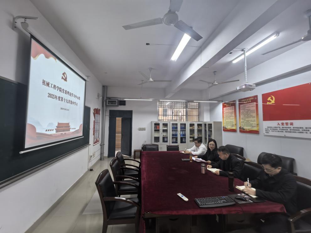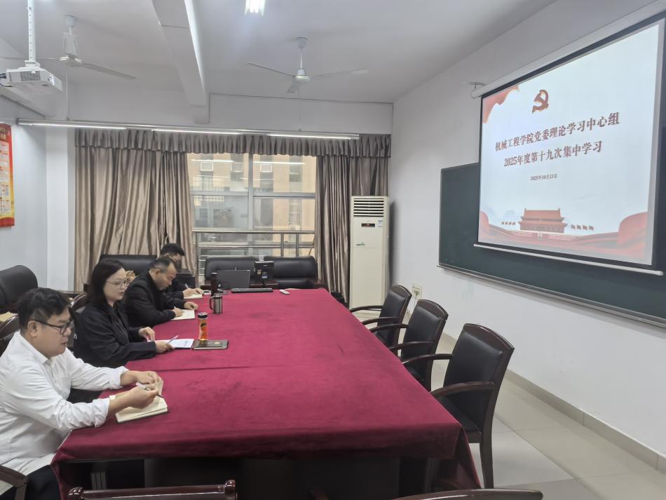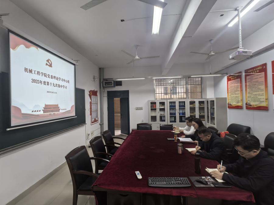 10月13日10:30,机械学院党委理论学习中心组在16301B会议室举行2025年度第十九次集中学习,学院党委班子成员参加,会议由党委书记徐丹主持。