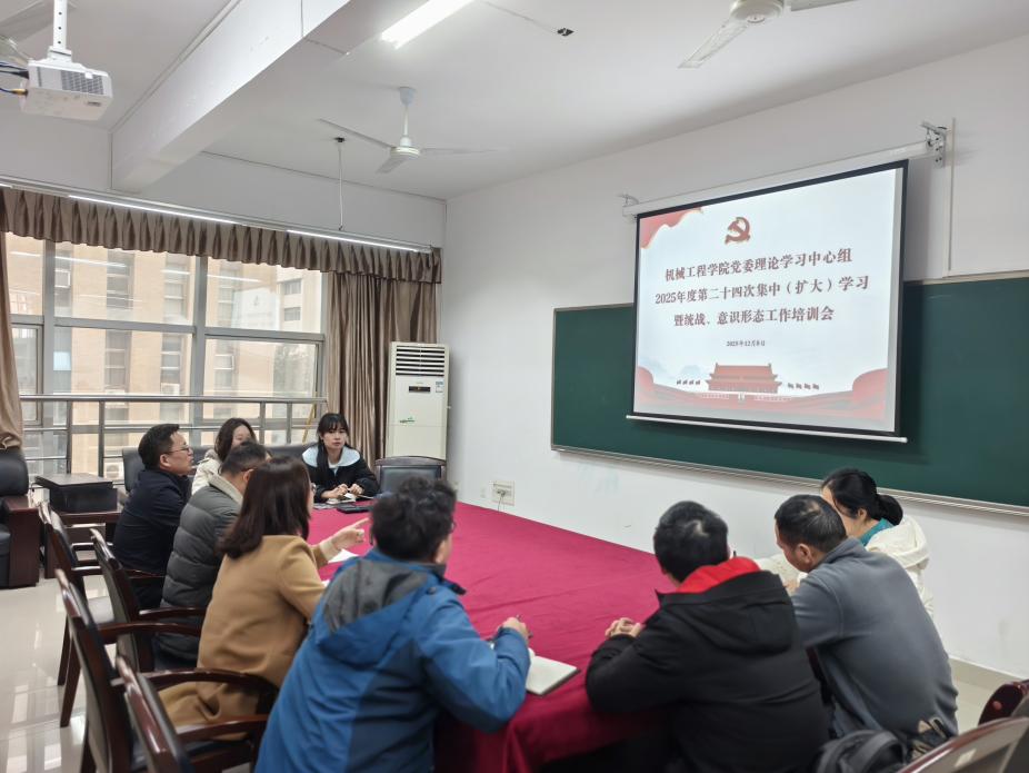 12月8日9:00,太阳成集团tyc党委理论学习中心组在16301B会议室举行2025年度第二十四次集中(扩大)学习暨统战、意识形态工作培训会,会议由党委书记徐丹主持,全体中心组成员、辅导员参会。