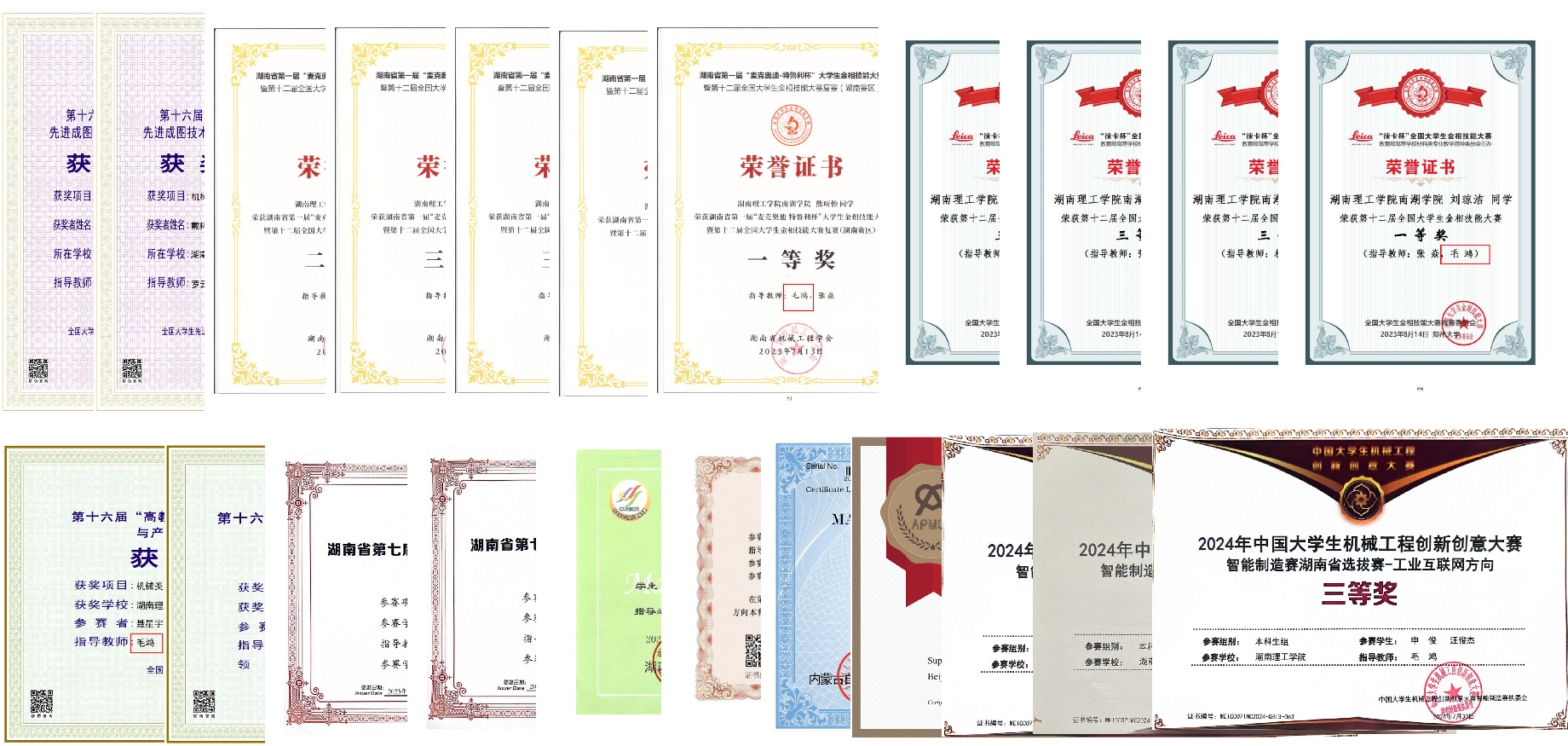 近两年毛鸿老师指导学生参加竞赛获奖证书