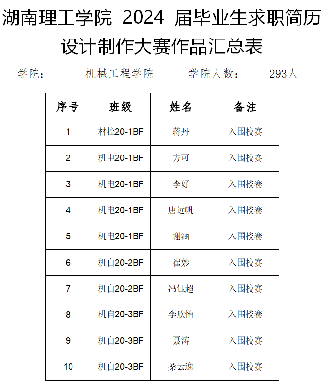 以下为本次大赛的入围名单