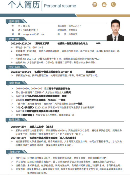 每一位获奖同学的简历