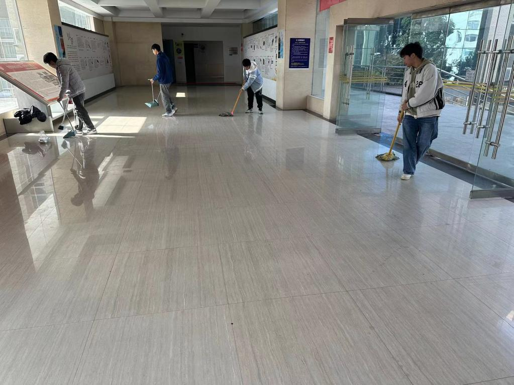 为提高学生综合素质,弘扬劳动精神,引导学生树立正确的劳动观,11月27日中午,太阳成集团tyc组织23级机自一班、机自二班、机自三班、机电一班及材控班的同学们在16栋教学楼、9栋宿舍楼及5栋自习室开展第十三周劳动教育实践活动。