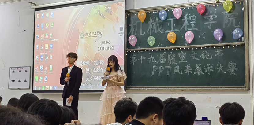 本次比赛共有十三支寝室队伍入围决赛。赛程中由各寝室代表用PPT向观众们展示寝室成员的个人风采,介绍寝室环境的独特魅力。同时也向大家分享寝室生活的幽默风趣、点点滴滴。各寝室成员代表诙谐、精彩的阐述让评委和同学们时而热泪盈眶,时而捧腹大笑,纷纷为台上的选手们喝彩。