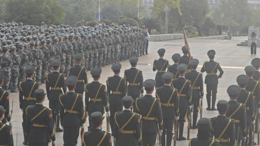随着激昂的国歌声响起,鲜艳的五星红旗在护旗手的护送下,缓缓升起,迎风飘扬。那一刻,全体同学肃立,目光坚定,心中涌动着无比的自豪与使命感。升旗仪式不仅是对国家的尊重,更是对即将开始的军训生活的一种庄严承诺,誓要在接下来的日子里,以军人的标准严格要求自己,磨炼意志,提升自我。
