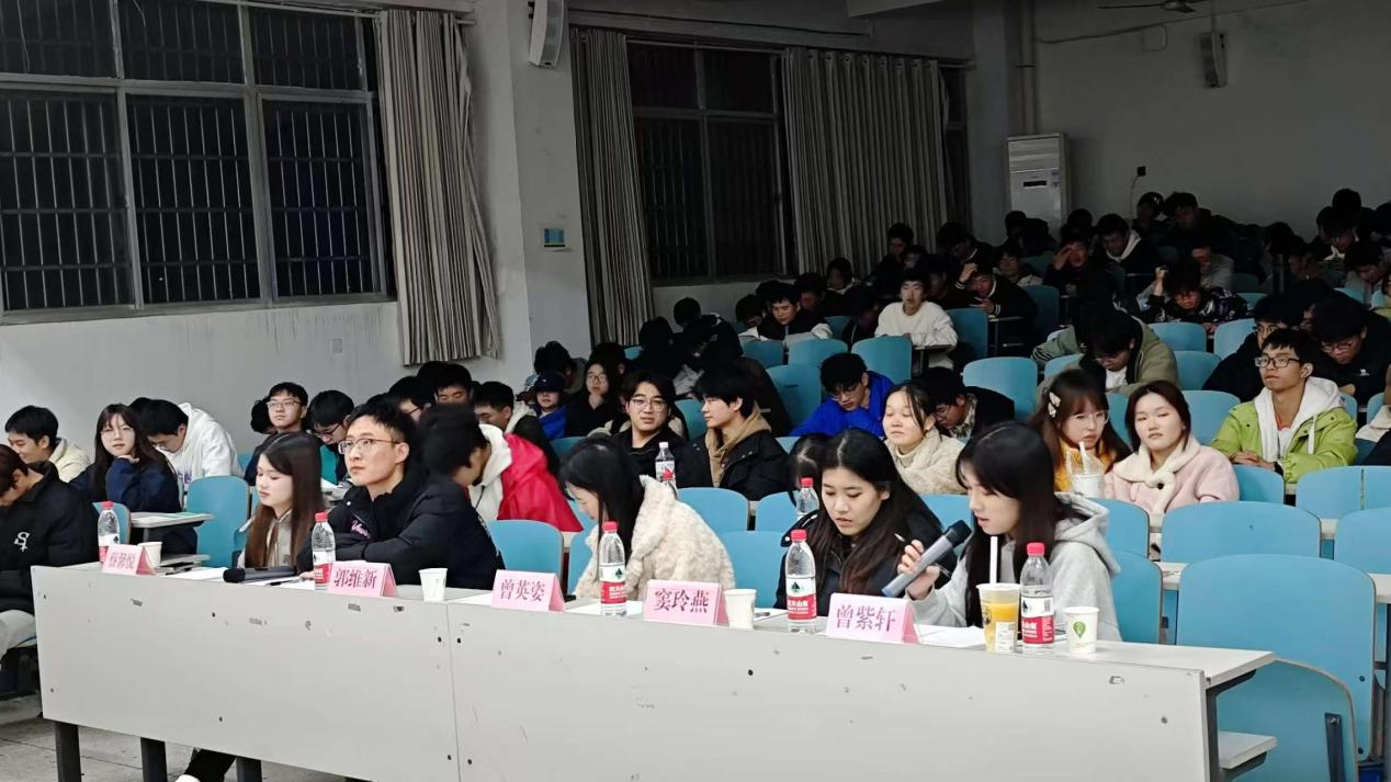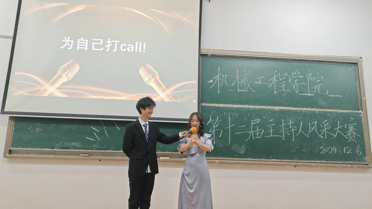 12 月 6 日 19:00,我院于 9T2 教室成功举办第十二届主持人风采大赛决赛。本次比赛特邀学院团委副书记曾英姿、学校大学生艺术团执行主席蔡馨悦、办公室主任郭维新、联络部部长窦玲燕以及第十一届主持人风采大赛冠军曾紫轩担任评委,大赛由陶晓灿主持。