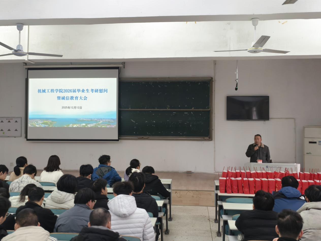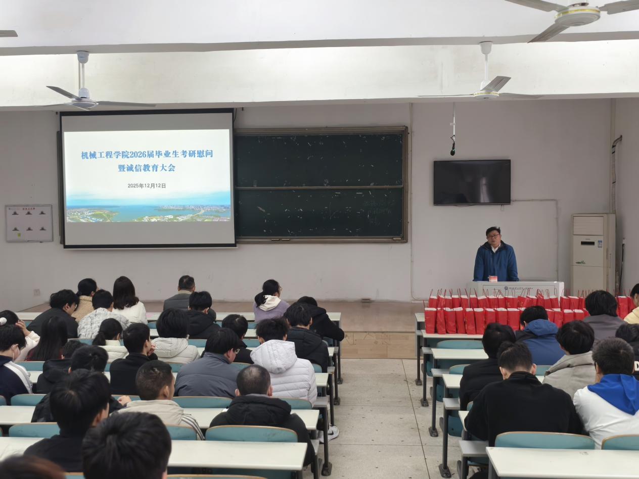 此次考研慰问暨诚信教育大会,既是一次考前动员的鼓劲会,也是一场诚信考风的教育会,更是一次学院与学子的暖心交流会。学院始终以学子成长为核心,全力搭建升学护航平台,厚植优良学风沃土。愿全体考研学子带着学院的关怀与祝福,秉持诚信之心、怀揣奋进之志,在考场上沉着应战、发挥所长,成功圆梦理想学府,在更广阔的天地间绽放机械学子的青春光彩!(责编/王荣荣 初审/谭晶莹 终审/徐丹)